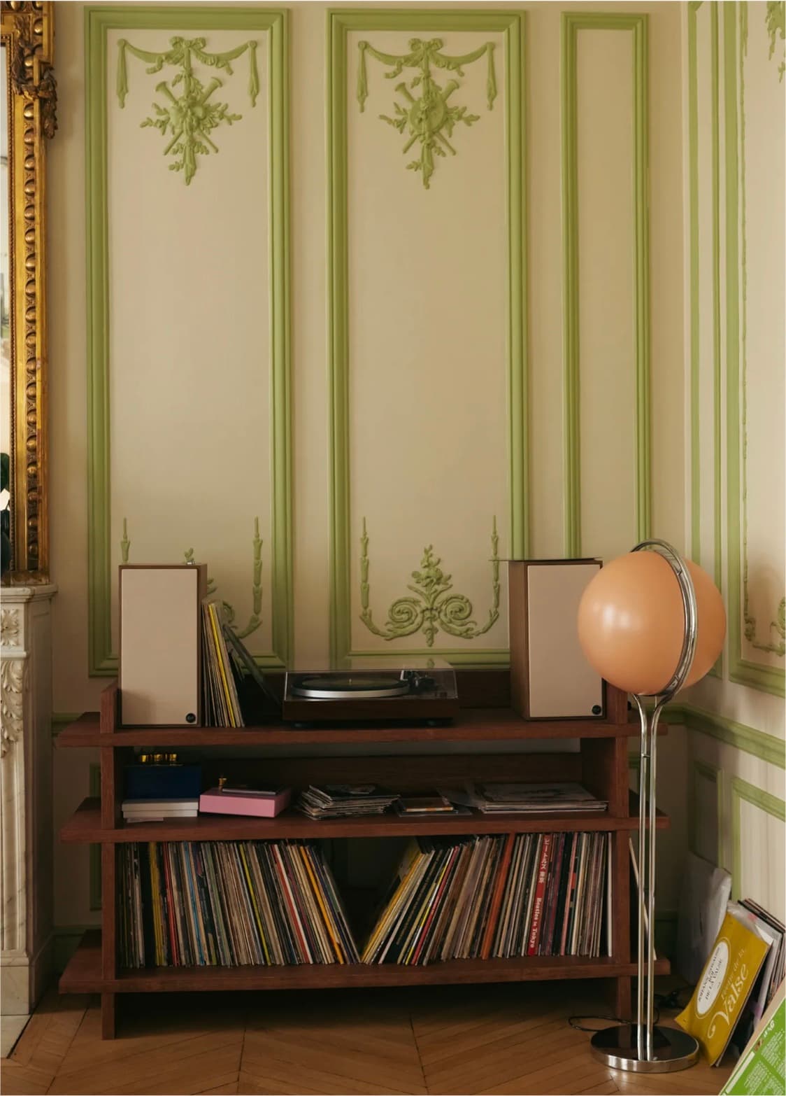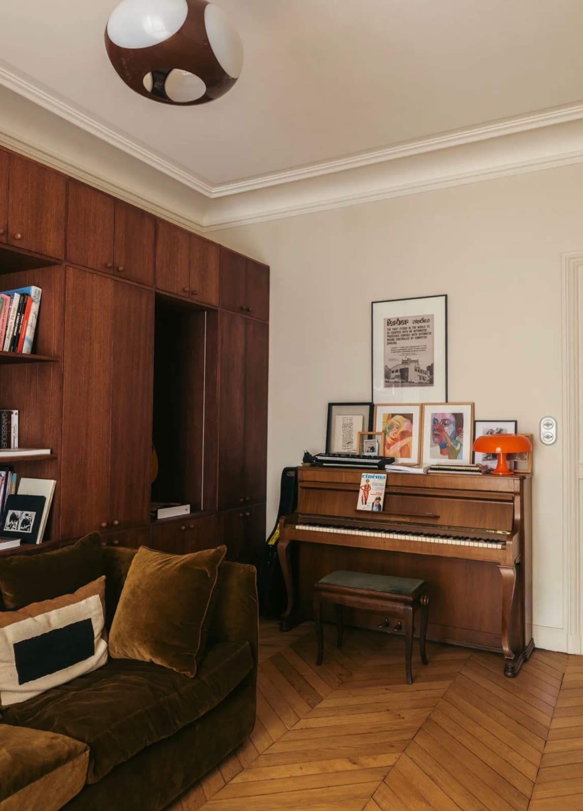 Dès qu’on entre, le bois raconte l’histoire : il écoute les pages des livres, les notes du piano, les vinyles qui craquent doucement.
